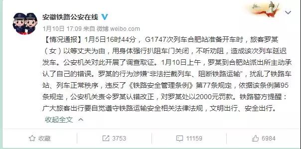 近日,為等遲到老公上高鐵,女子扒阻高鐵車門事件一度在網上火傳。該事件中女子的的行為涉嫌“非法攔截列車、阻斷鐵路運輸”,擾亂鐵路車站、列車正常秩序,違反《鐵路安全管理條例》第77條規定。公安機關對該女子做出責令其認錯改正,并處以2000元罰款的處罰。