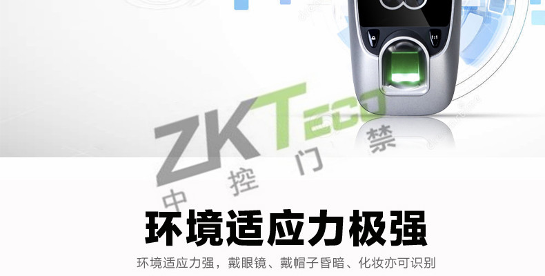面部門禁一體機iFace7是基于ZEM800多媒體開發平臺設計的一款集指紋和面部混合驗證的3寸觸摸彩屏門禁終端,采用ZKFinger VX10.0最新指紋算法及ZKFace VX7.0面部算法,識別速度快,靈活選擇面部、指紋或者密碼開門方式,集成高分辨率夜市紅外和雙攝像頭功能,適應范圍廣。支持高級門禁功能(不同時間段開門,多人開門,拆機報警,門未關好報警,門被非法打開報警,開門按鈕輸入,有限門鈴接口,脅迫報警等)。標配的TCP/IP通訊,支持跨網段跨網關連接,是安防工程的首先產品,可用于銀行、部隊、機場等高安全場所。