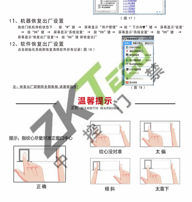 · 記錄數 : 80000· 驗證方式 :  [F2]指紋,密碼,指紋或密碼[F2-ID]支持單指紋,卡+指紋,單獨卡,單密碼,指紋或密碼,卡或指紋