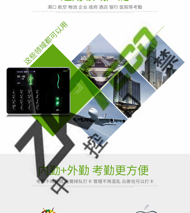 中控w6考勤機 超薄彩屏打卡機